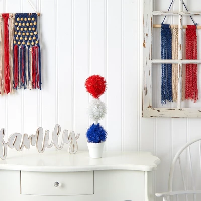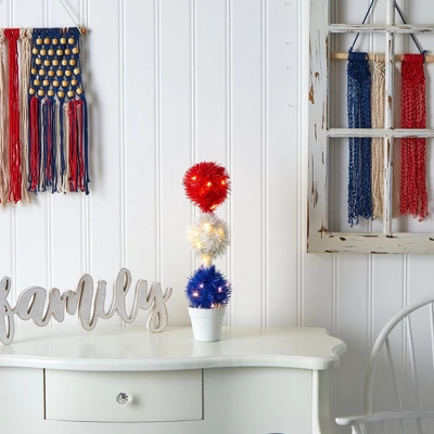 Nearly Natural 18-in Red, White And Blue “Americana” Artificial Topiary Plant With 35 Warm LED Lights
