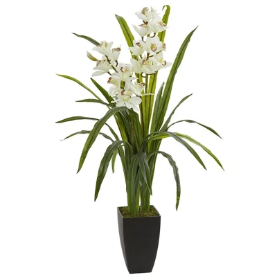 Pure white blooms rise above the two green stems and several long green leaves with this 39” cymbidium orchid artificial plant. With its elegant appearance, it’ll look great when placed on your bedroom’s nightstand, dresser, or vanity. Regardless of where you place this, be sure to surround it with LED candles to give your private quarters a more calm and relaxing ambiance.