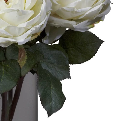 Do you love the look of roses, but don’t have a ton of decorating space? Then this beautiful Nearly Natural Fancy Rose with Cylinder Vase Silk Flower Arrangement is tailor made for you. Featuring several full rose blooms made of wire and polyester, tucked away in the cutest cylindrical glass vase, this piece captures the rose’s sheer elegance, without taking up a ton of space. Perfect for a counter, your desk, or side table, this arrangement also makes a fine gift.