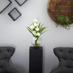 15.5″ X 9.5″ Artificial Calla Lily And Grass Plant Arrangement In Vase – Nearly Natural