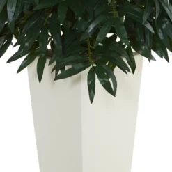 37″ X 22″ Artificial Double Bamboo Palm In White Tower Vase – Nearly Natural